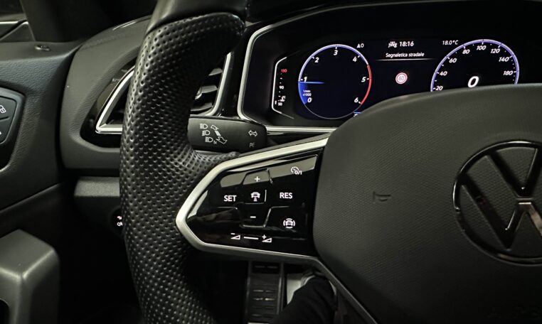airbag testa ant. e post. incl. airbag lat. ant.- Climatronic 2 zone- Electronic Stability Program (ESP)- ASR/ABS, EDS,- Sistema assistenza guida: Regolazione distanza automatica (ACC incl. limitatore velocità)- avviso superamento involontario linee carreggiata (lane assist)- luci di posizione automatiche con Leaving Home / Funzione luci Coming Home, luce guida diurna led- Interfaccia Multimedia 2 x USB (tipo C) ant. e 2 x base ricarica USB (tipo C) consolle ctr. post.- Funzione navigazione Discover Media incl. Streaming & Internet (display a colori Touchscreen)- radioricevitore digitale (DAB +)-Digital Cockpit Pro (strumentazione Digital)- copertura bagagliaio regolabile in altezza- modanature sottoporta ant. R-Line- cerchi in lega 18 (Nevada, Nero, tornito lucido)- vetratura post. oscurato (65 %)- proiettore led Plus- specchio int. con autoanabbagliante- sistema osservazione ambiente (Front assist) con Funzione freno di emergenza city- retrovisore est. a regolazione elettrica, riscaldabili e pieghevoli, con Memory- volante (sportivo in pelle) multifunzione- sistema chiusura-/Startsystem Keyless Access – assistenza guida: sensore colpo di sonno- regol. orientamento proiettori autom.- Serivzio mobile Online App-Connect incl. App-Connect Wireless (Apple CarPlay, Android Auto)- Allestimento int.: inserti decorativi Lave Stone Black- sedili Tessuto R-Line / AGM Art-Velours- Serivzio mobile Online predisposizione We Connect e We Connect Plus- freno di stazionamento elettr. con Sistema Auto-Hold- pacchetto Cromo- pedali acciaio- assistenza guida: Riconoscimento segnaletica stradale- assistenza guida: parcheggio servoassistito (Park Assist)- tergicristalli con sensore pioggia-