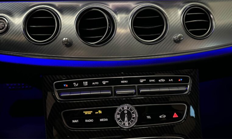 airbag addominale ant. (Pelvisbag)-airbag ginocchia lato guida-airbag lat. (Sidebag) ant.-sistema airbag testa ant.- climatizzatore automatico (thermatic 2 zone)- modulo navigazione Garmin MAP PILOT Sistema audio-navigazione: COMAND Online Navigationssystem: SD-Karten-Navigation-consolle ctr. Look Laccatura Pianoforte-Cerchi in lega R 20 diamantati-Allestimento int.: fregi alluminio con Tratti carbonio, chiaro-quadro strumenti con variabili indicatore (Widescreen Cockpit)- assetto Comfort ribassato (Agility Control)-luci Ambiente-orologio (analogico)- Pacchetto-allestimento: Eurocomfort-pacchetto AMG-optic/pacchetto styling 1- pneumatici con sistema emergenza-sistema PRE-SAFE–tappetini velluto AMG-proiettore led High Performance-sedili ant. a regolazione elettrica riscaldabili e ventilati-Sistema assistenza guida: Agility Select / Dynamic Select (Interruttore modalità di guida)- Sistema assistenza guida: Sistema di allarme con funzione frenante (Collision Prevention Assist)- Infotainment-System: Remote Online-Sistema assistenza guida: Attention-Assist (sensore colpo di sonno)- Serbatoio urea (AdBlue), maggiorato-Interni con rivestimento Tessuto / i pelle Artico-cambio automatico – (9 rapporti) 9G-TRONIC-specchietto est. e int. con autoanabbagliante-Sistema assistenza guida: attivo assistenza parcheggio-tergicristalli con sensore pioggia-portaocchiali in padiglione integrato-griglia radiatore, regolabile (Airpanel)-tetto apribile panorama elettr. (superficie tetto completamente vetrata)- schienale post. sdoppiat. / ribaltab.- Mercedes-Benz sistema chiamata di soccorso-Touchpad (consolle ctr.)- retrovisore est. pieghevole elettr.- Funzione ufficio in veicolo-pedali in acciaio inox linea sportiva-tappetini AMG-